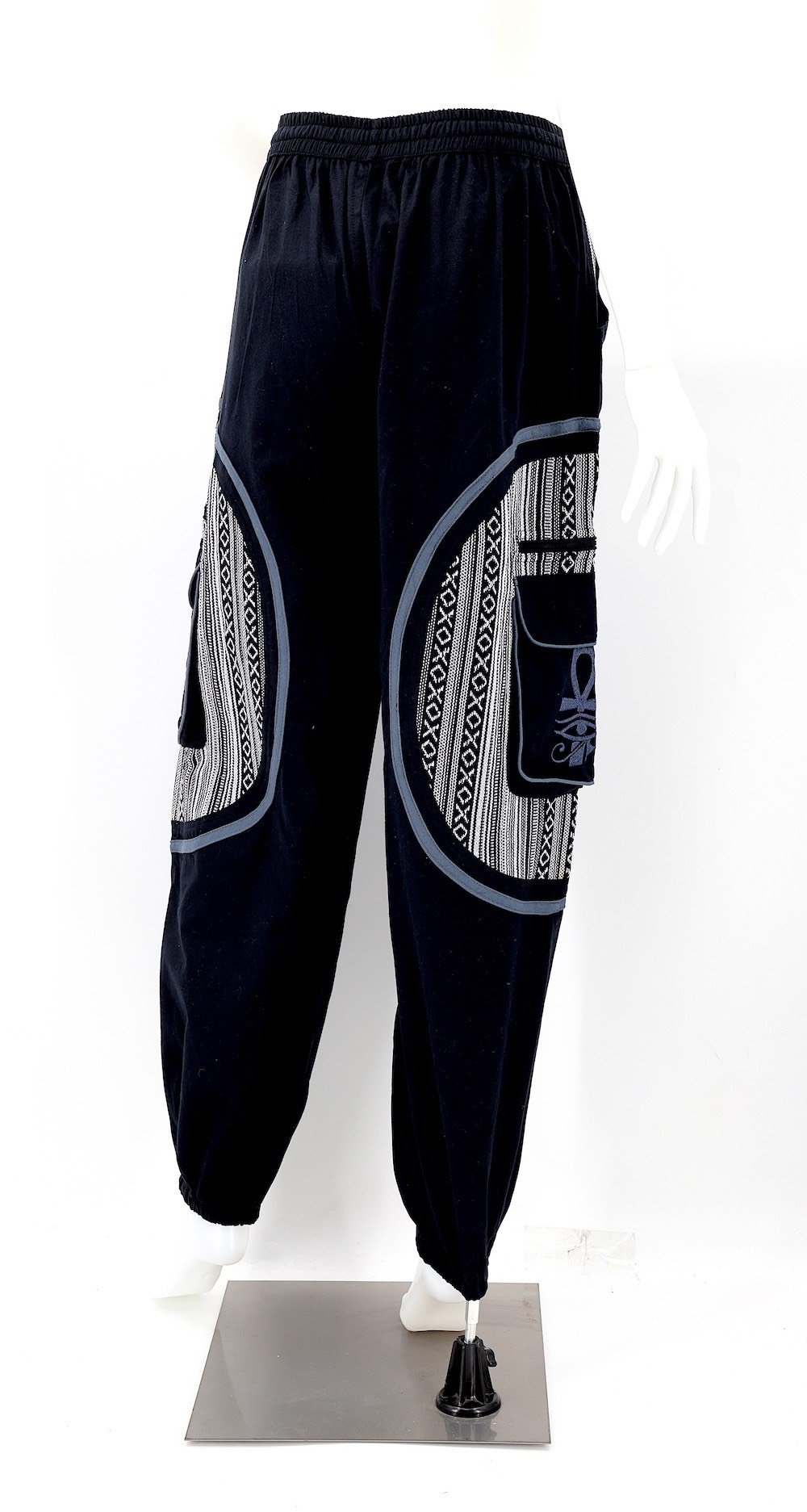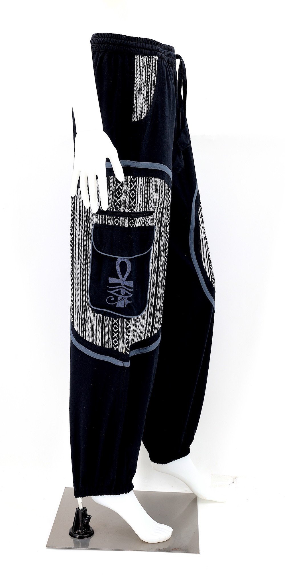 These unique Hippie Solid Color Eye of Ra, Eye of Horus, and Egyptian Ankh Embroidered Plain Gheri Patterned Pants are crafted from the finest 100% Natural Handwoven Cotton by some of the most skilled artisans. Elevate your style instantly with these extraordinary and highly fashionable Solid Color Pants that are suitable for almost any occasion, ensuring you always look your best.