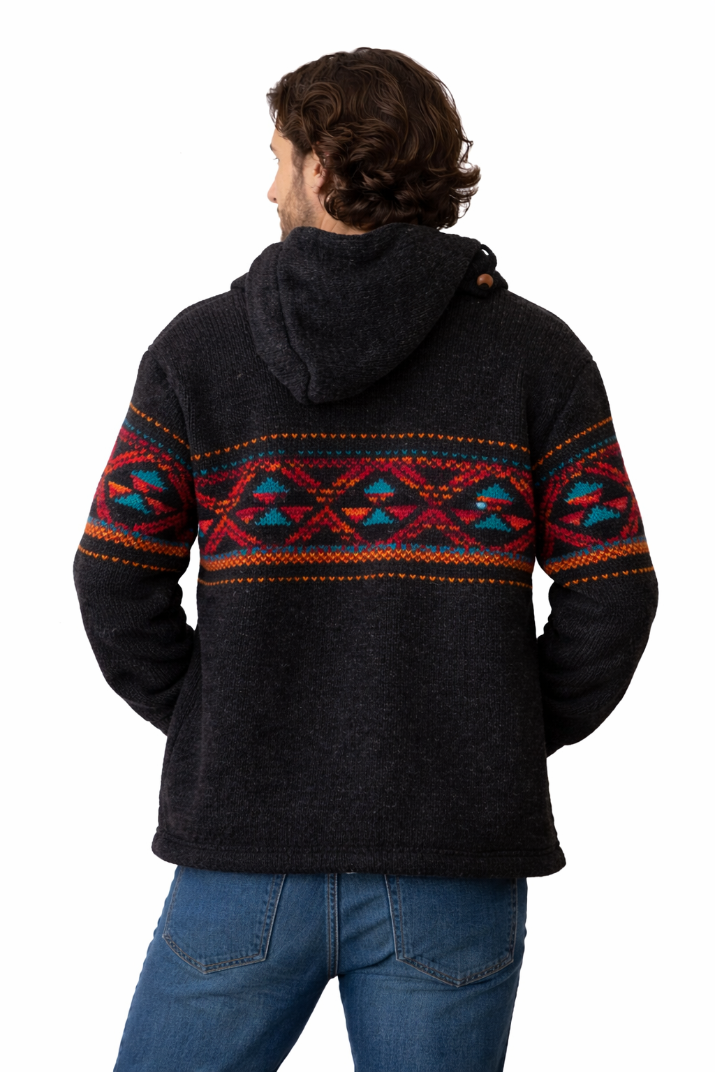 Handmade Woolen Jacket with Vibrant Tribal Pattern – Nepali Artisan Hoodie